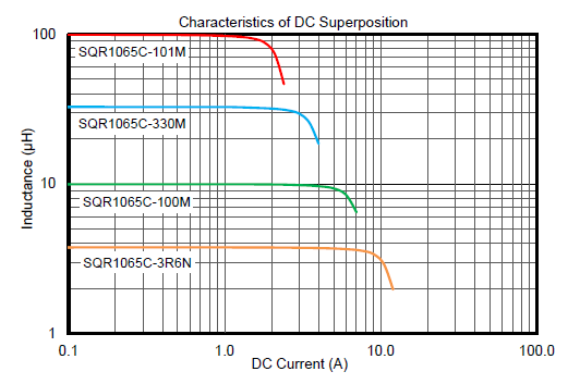 - 直流重畳許容電流:インダクタンスの減少が初期値から30%以内となる電流値